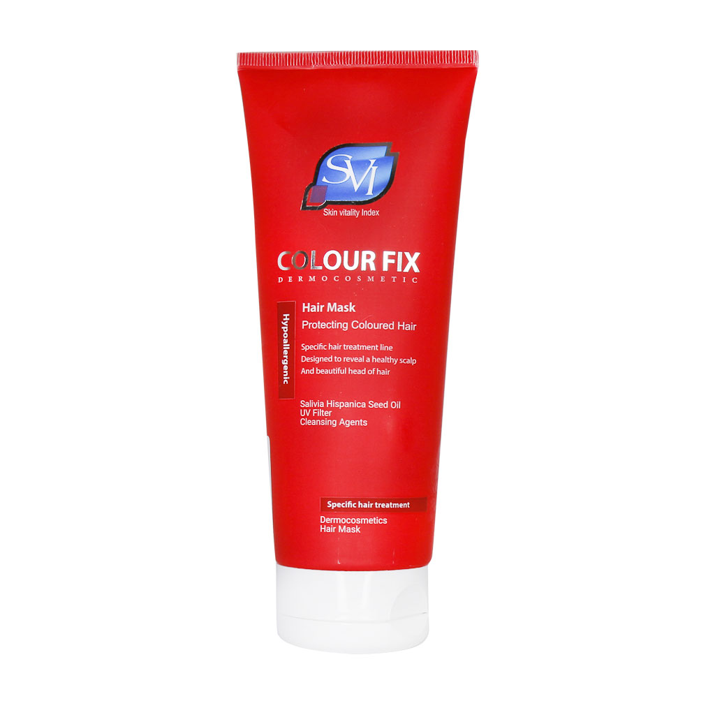 بعد از رنگ کردن مو معمولا موها دچار خشکی و موخوره می‌شوند. ماسک موی کالر فیکس اس وی آی به ترمیم ساختار تار موهای شما کمک می‌کند و بافت آسیب دیده را به خوبی ترمیم می‌کند. ماسک موی تیوپی با آبکشی اس وی آی برای موهای رنگ شده بسیار مناسب بوده و خشکی ساقه موهایتان را ترمیم می‌کند. همچنین با استفاده از این ماسک مو از تار موهای خود در برابر اشعه ماوراء بنفش محافظت کنید.
