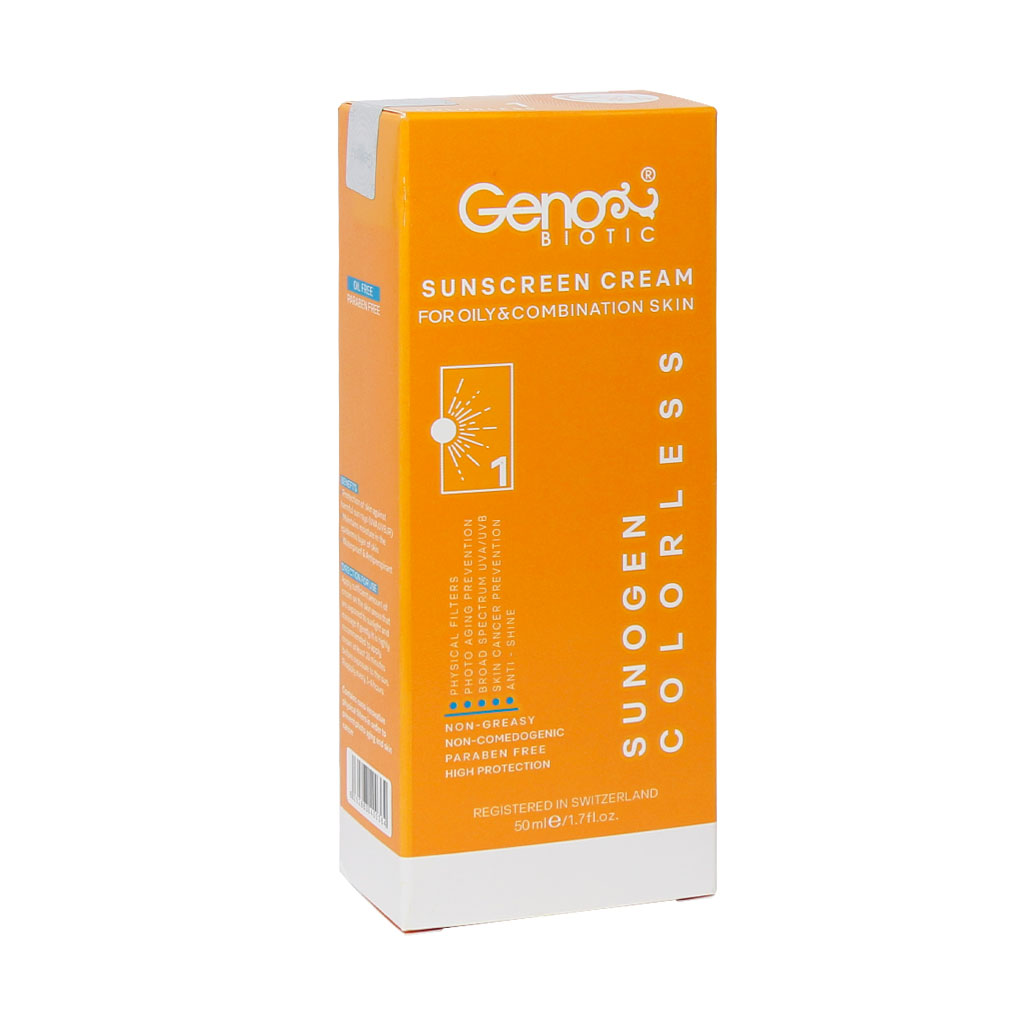 - محافظت در برابر اشعههای مضر: کرم ضد آفتاب ژنوبایوتیک برای پوست چرب دارای فیلترهای قوی UVA و UVB است که از پوست در برابر اشعههای مضر خورشید محافظت نموده و از پیری زودرس پوست، لکههای خورشیدی و خطرات سرطان پوست جلوگیری میکند.
