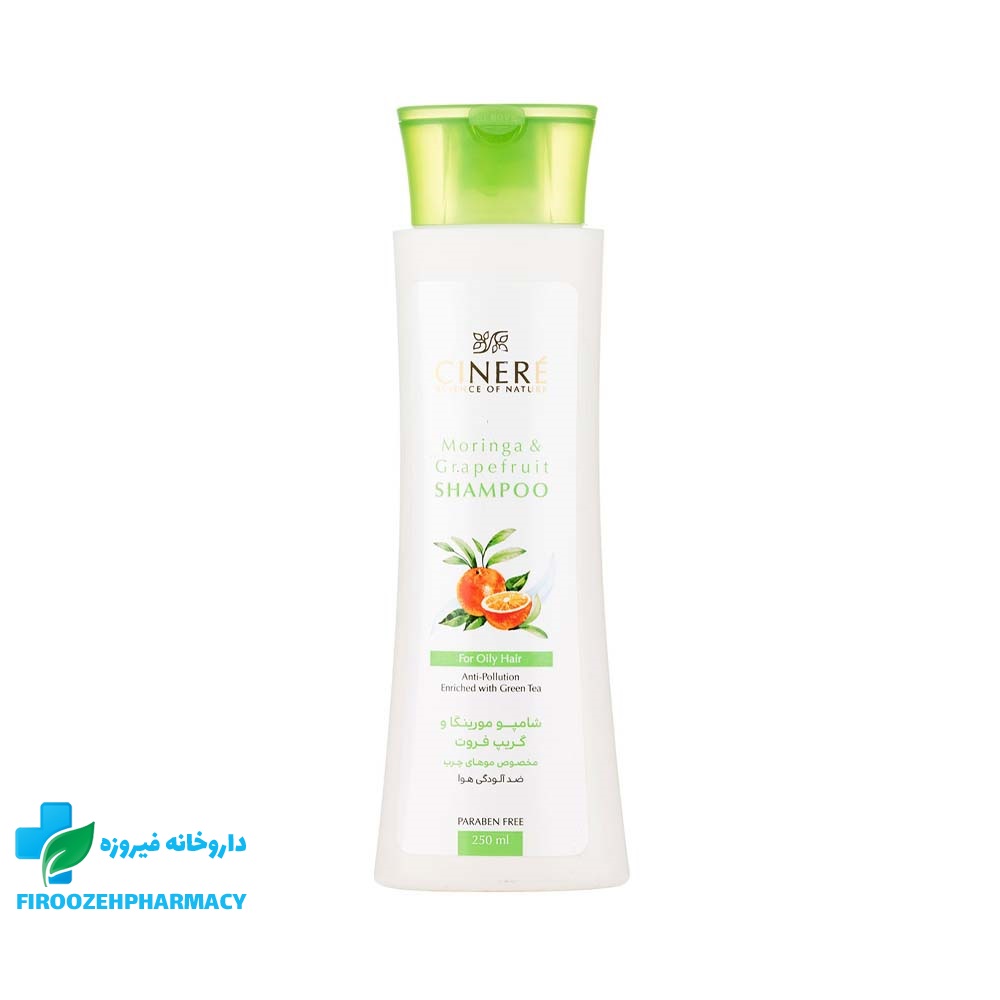 شامپو مورینگا و گریپ فروت سینره با دارا بودن فرمولاسیون ملایم و مواد مؤثره طبیعی قادر است موها را از چربی اضافی پاک نماید و باعث کاهش ترشح چربی مو شود. این شامپو مناسب موی چرب می باشد و با استفاده از این شامپو موها به حالت نرمال نزدیک می شود و دیرتر چرب می شود و نیاز به شستشو کاهش می یابد.