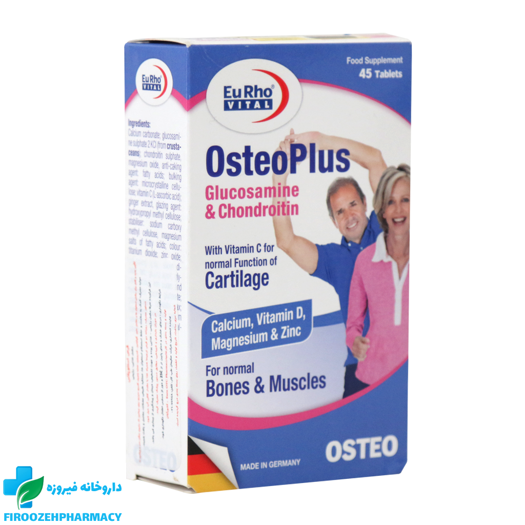 قرص استئوپلاس یوروویتال در حفظ سلامت استخوان ها و غضروف مفاصل نقش بسزایی دارد. این قرص از پوکی استخوان پیشگیری کرده و باعث حفظ تراکم استخوان ها می گردد، این محصول همچنین به عملکرد طبیعی عضلات، مفاصل و بافت همبند کمک کرده و باعث حفظ تراکم استخوان ها می گردد.