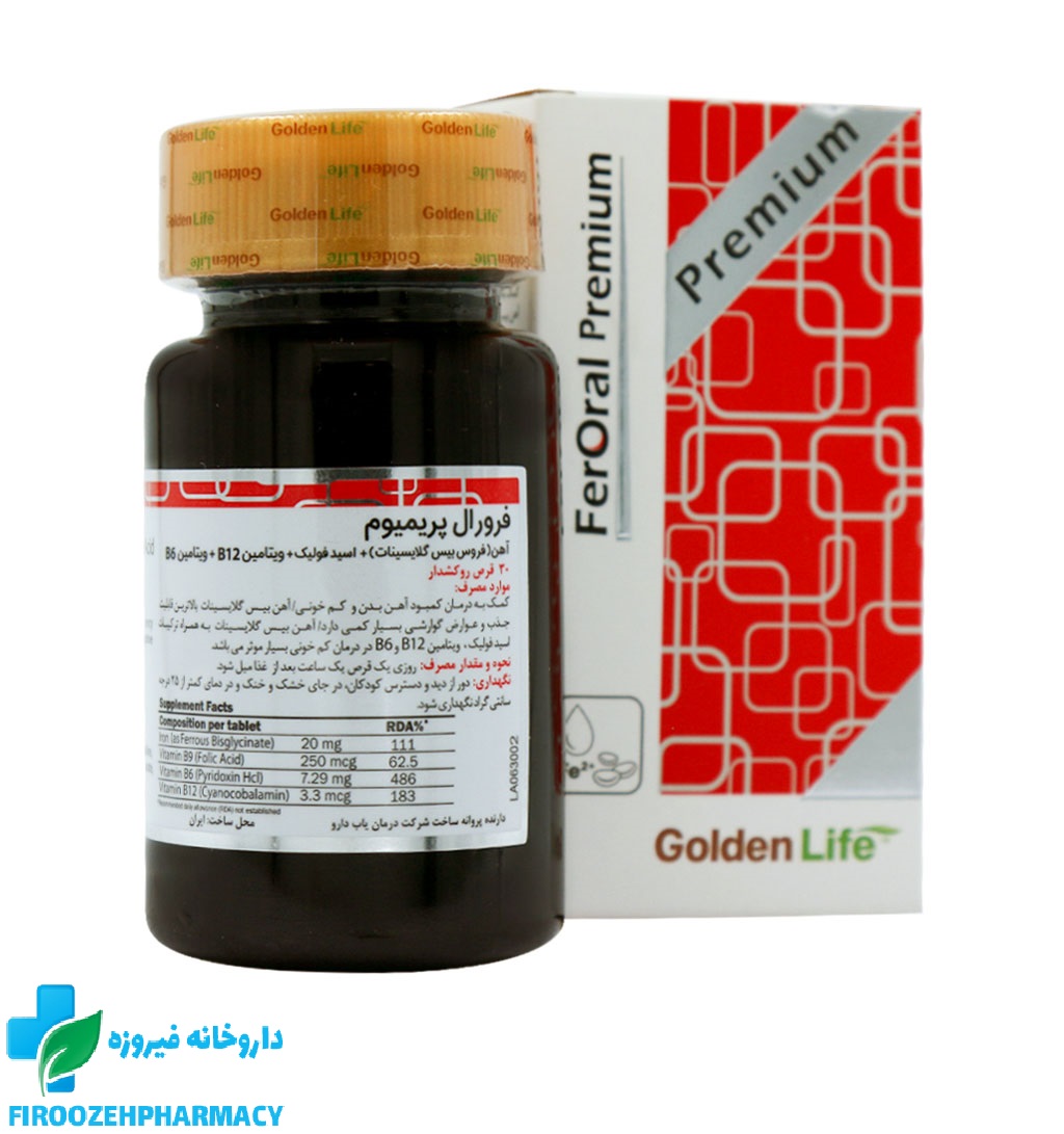 قرص فرورال پریمیوم گلدن لایف یک مکمل غذایی است که به طور خاص برای تامین آهن مورد نیاز بدن طراحی شده است. این قرص حاوی آهن به شکل فروس بیس گلایسینات، فولیک اسید، ویتامین B12 و ویتامین B6 بوده که به بهبود کم خونی ناشی از فقر آهن، افزایش انرژی و درمان کمبود آهن کمک میکند. ملح بیس گلیسینات آهن به دلیل فرمولاسیون خاص موجب شده تا علائم گوارشی آهن به حداقل برسد و جذب بالاتری نسبت به اشکال دیگر آهن داشته باشد. شایان ذکر است این محصول به شکل قرص روکش دار 30 عددی در قوطی پلاستیکی توسط شرکت درمان یاب دارو در داخل کشور تولید و بسته بندی میشود.