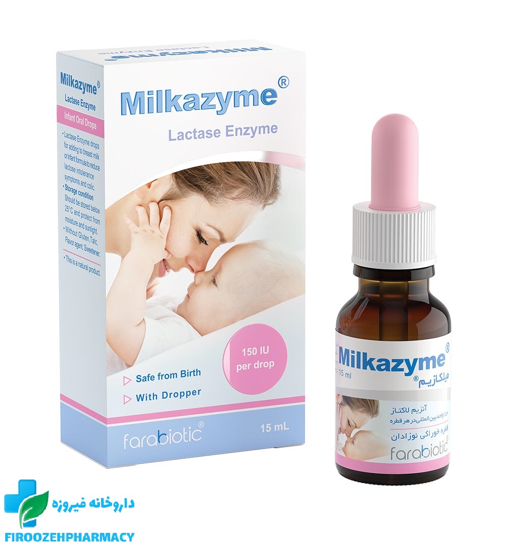 قطره میلکازیم، یک فرآورده طبیعی متشکل از 150 واحد بین المللی آنزیم لاکتاز در هر یک قطره به عنوان ماده موثره آن است و می توان مقدار مشخصی از قطره را بر اساس سن نوزاد در جهت کمک به هضم قند لاکتوز موجود در شیر مادر یا شیرخشک استفاده نمود.