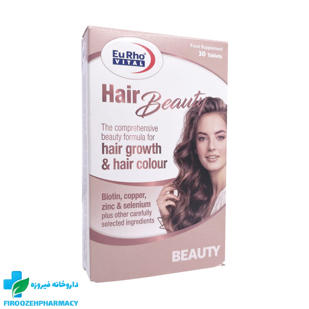 قرص هیر بیوتی یوروویتال دارای فرمولاسیون خاص جهت تقویت مو است. برای مثال روی، بیوتین و سلنیوم در حفظ سلامت مو موثر بوده و یا مس موجود در آن در حفظ رنگدانه طبیعی مو نقش دارد. به علاوه دیگر ترکیبات به کار رفته در این مکمل همانند ویتامین سی در حفظ سلول‌ها در برابر استرس اکسیداتیو موثر هستند. همچنین قرص Hair Beauty یوروویتال حاوی دم اسب گیاهی است که دارای اهداف مصرفی گوناگونی است. این ماده به طور طبیعی در ساخت سیستئین و سلنیوم نقش دارد و ماده موثری برای تقویت مو محسوب می‌شود. سیستئین یکی از اجزا طبیعی تشکیل دهنده مو و کراتین موجود در ناخن است. پابا نیز ( پارا آمینو بنزوئیک اسید) در حفظ ظاهر طبیعی مو بسیار تاثیر دارد.
