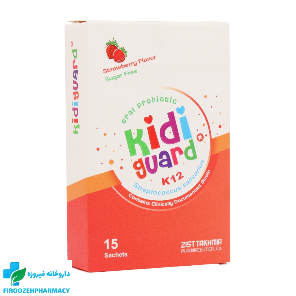 ساشه کیدی گارد زیست تخمیر یک فراورده سین بیوتیک با اثر بخشی بالا برای نوزادان، کودکان و بزرگسالان است. این محصول حاوی مقادیر بالایی از باکتری سومند و ایمن استرپتوکوکوس سالیواریوس k12 به همراه سوربیتول به عنوان پری بیوتیک است. طبق مطالعات انجام شده این سویه به علت توانایی بالا در اتصال به مخاط دهان انسان و کلونیزاسیون سریعتر و بهتر میان سایر پروبیوتیکها مزیت بسزایی در حفظ سلامت گوش، حلق و بینی دارد و به عنوان یک مکمل تقویت ایمنی کودک و بزرگسال توصیه میشود.