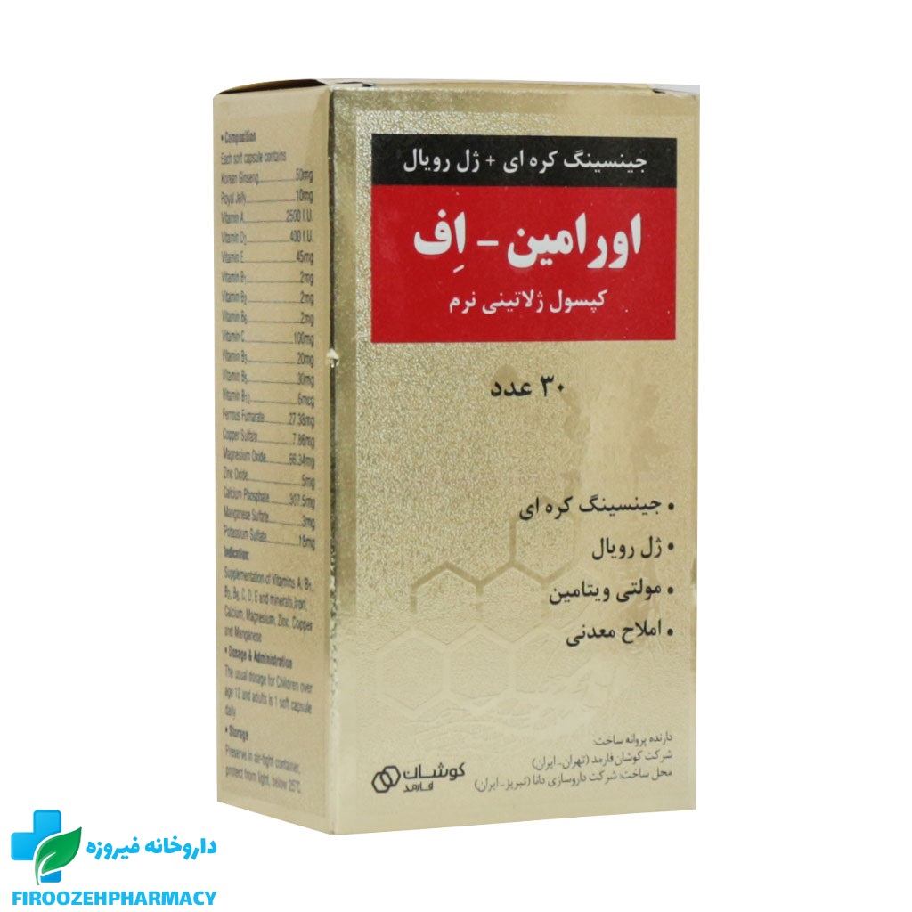 اورامین اف یکی از مکمل های مولتی ویتامینی است که حاوی ترکیبی نسبتا کامل از ویتامین ها و املاح به علاوه عصاره جینسینگ و رویال ژلی می باشد.