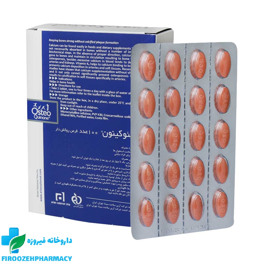 قرص osteo quinone یکی از مکمل‌های کلسیم موجود بوده که برای جلوگیری یا بهبود وضعیت پوکی استخوان مورد استفاده قرار می‌گیرد. از آنجایی که با افزایش سن سلامت استخوان‌ها در خطر است و میزان جایگزینی مینرال‌ها کاهش پیدا می‌کند، مصرف این گونه مکمل‌ها لازم و ضروری است و به حفظ تراکم استخوان کمک می‌کند. فرمولاسیون خاص osteo قرص طوری تهیه شده است که بر خلاف دیگر مکمل‌ها باعث جذب فعال کلسیم شده و از رسوب کلسیم در کلیه‌ها جلوگیری می‌کند. کپسول osteo علاوه بر کلسیم حاوی فرم فعال ویتامین D3 و K2 است که به جذب بیشتر کلسیم و استخوان‌ سازی در بدن کمک می‌‌کنند.