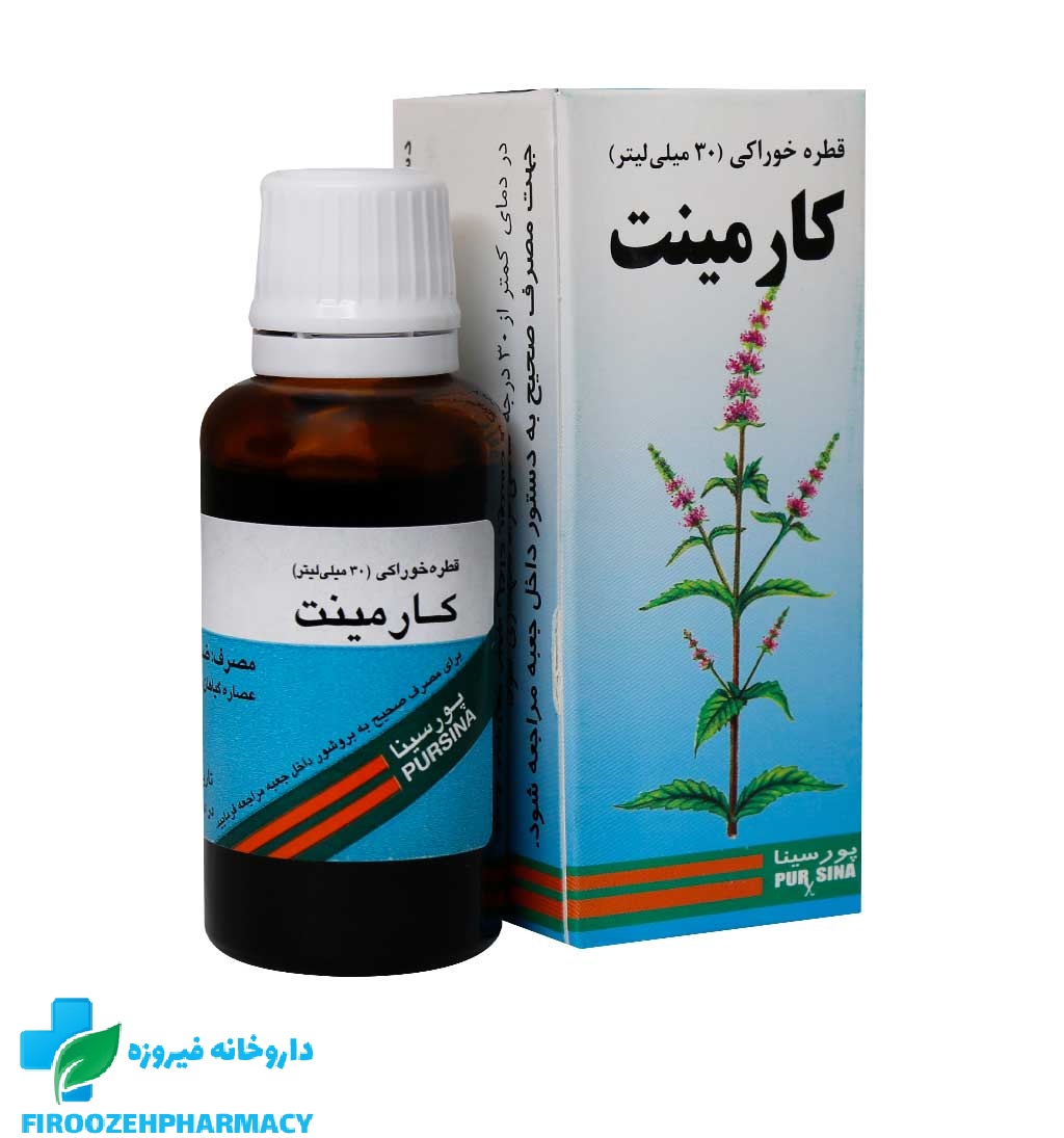 قطره کارمینت پورسینا دارویی 100 درصد گیاهی است. این فرآورده از عصاره 3 گیاه نعنا (Mentha Spicata)، گشنیز (Coriandrum Sativum) و بادرنجبویه (Melissa Officinalis) تهیه شده است. گیاهان مذکور از مشهورترین گیاهان دارویی حاوی اسانس بوده که از زمان های دور بعنوان اشتها آور و ضد سوء هاضمه مصرف شده اند. مخلوط ترکیبات و اسانس های این سه گیاه باعث تقویت اثر یکدیگر شده و به همین خاطر این قطره از خاصیت درمانی قابل توجهی برخوردار است. روغنهای فرار موجود در کارمینت مانند لیناکول، منتول و سیترال با داشتن اثرات آنتی اسپاسمودیک و کاهش تونوس اسفنکتر تحتانی مری موجب تسهیل خروج گازها از معده میگردند. به علاوه منتول موجود در نعناع احتمالا از طریق اثر آنتاگونیستی کلسیم موجب شل شدن عضلات صاف جداره کولون میشود.
