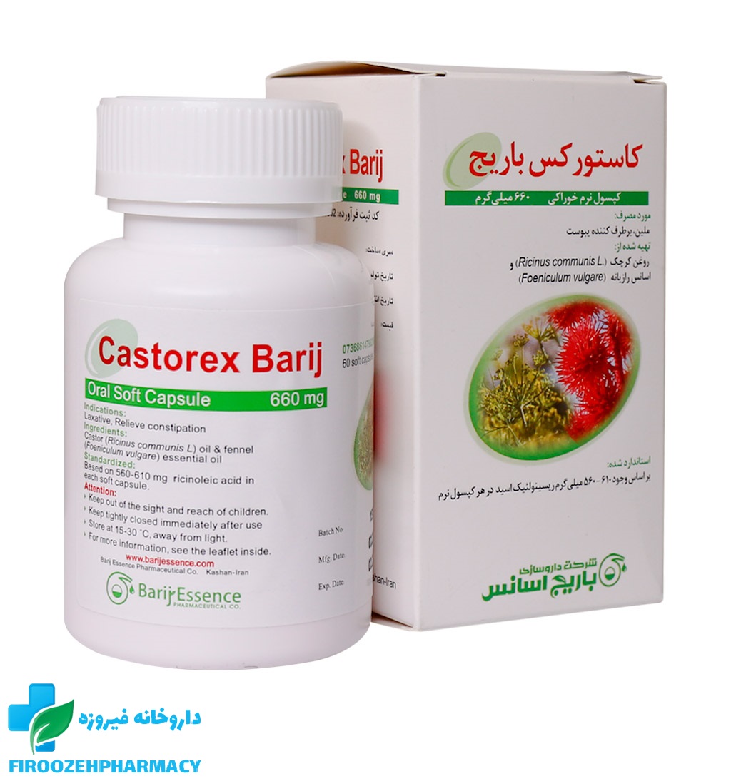 روغن کرچک و رازیانه موجود در کپسول نرم کاستورکس باریج اسانس هر دو روی حرکات روده بزرگ تاثیر گذاشته و حرکات دودی و انقباضات روده را افزایش میدهند. قرص کاستورکس باریج با داشتن این دو ماده موثر به رفع یبوست کمک میکند.