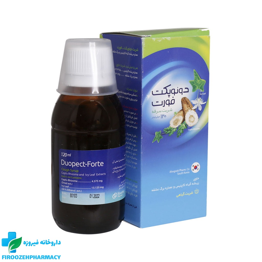 شربت سرفه دوئوپکت فورت یک شربت سرفه گیاهی است که خلط آور، ضد التهاب و ضد سرفه قوی است. این شربت با طعم دلپذیر خود برای همه سنین یعنی کودکان و بزرگسالان مناسب است. آلفا هدرین ماده موثره برگ گیاه پیچک است که به عنوان ضد اسپاسم برونش‌ها است. همچنین در برخی از مطالعات ثابت شده است که این عصاره به عنوان از بین برنده خلط قوی کودکان و بزرگسالان است. شما علاوه بر مصرف این شربت می‌توانید با راهکارهای درمان سرفه کودکان آشنا شوید. بربرین موجود در شربت سرفه ماده موثره اصلی ریشه گیاه کاپیتیس بوده و در درمان عفونت دستگاه تنفسی فوقانی بسیار موثر است.