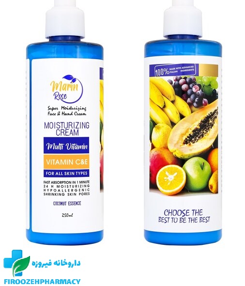 کرم دست و صورت مولتی ویتامین مارین رز با ترکیبی از ویتامین‌ها و مواد مغذی، به عنوان یک مرطوب کننده و تغذیه کننده پوست عمل می‌کند. این کرم حاوی ویتامین C و ویتامین E است که هر دو به عنوان آنتی‌اکسیدان‌های قوی شناخته می‌شوند. ویتامین C به روشن شدن پوست و کاهش لک‌های تیره کمک می‌کند، در حالی که ویتامین E به حفظ رطوبت پوست و جلوگیری از پیری زودرس آن کمک می‌کند.
