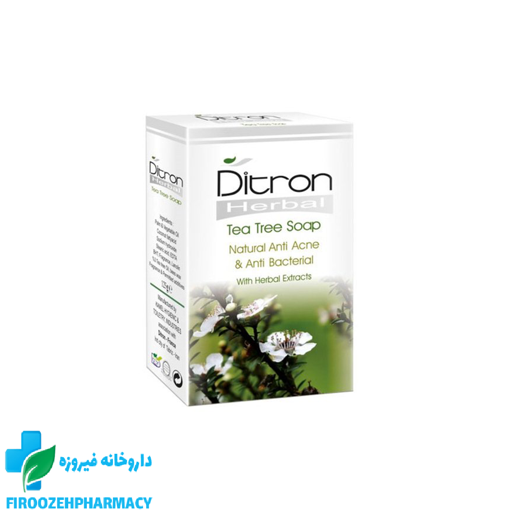 صابون تی تری دیترون حاوی عصاره برگ ها درخت ملولوکا بومی استرالیا است. وجود روغن درخت چای در این محصول آن را به یک ماده قوی ضد آکنه تبدیل کرده است. صابون تی تری دارای خواص ضد التهاب، ضد جوش، ضد چربی و شفاف کنندگی پوست صورت است. با مصرف مرتب از این محصول میتوانید چربی تولیدی پوست خود را کاهش داده و به تعادل برسانید. روغن درخت چای اصل میتواند به عنوان مکمل در کنار این محصول مورد استفاده قرار گیرد. به این ترتیب خواص ضد ویروسی، ضد قارچی و ضد اشعه بودن یک دیگر را تقویت میکنند. صابون تی تری علاوه بر جذب چربی اضافه پوست باعث نرمی و لطافت آن میشود.