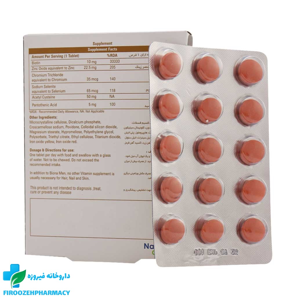 قرص بایونا من نیچرز اونلی با داشتن ترکیبات موثر و تامین ویتامین‌ها و مواد معدنی مورد نیاز بدن به سلامت پوست، مو و ناخن کمک موثری می‌کند. همچنین باعث تقویت سیستم ایمنی آقایان می‌شود.